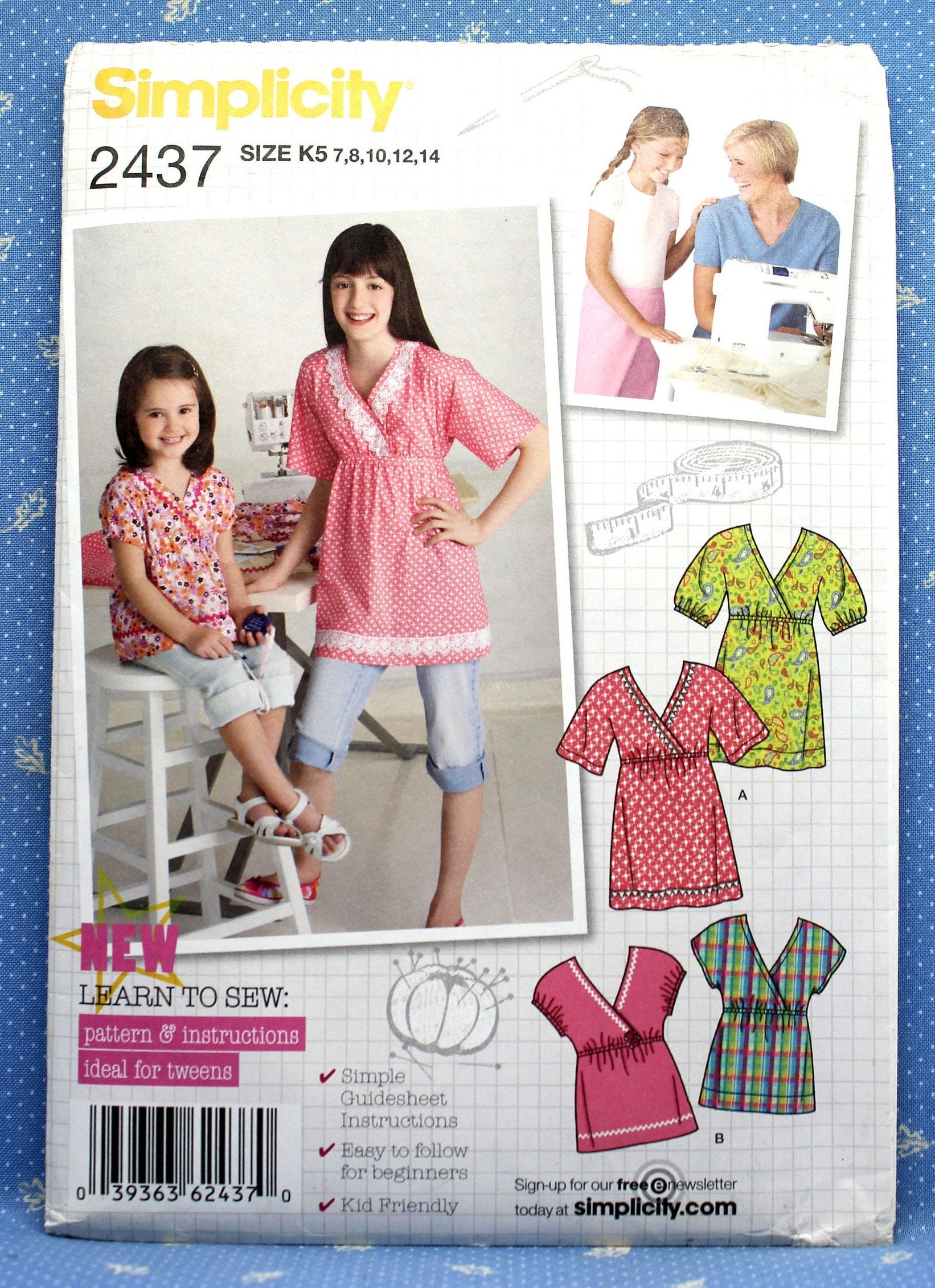 Simplicity Sewing Pattern 2437 Girls Kimono Sleeve Top Etsy